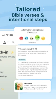 - Grow in faith daily with personalised Scripture and growth steps.