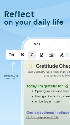 - Highlight verses in the Bible and add personal notes to remember what speaks to you.