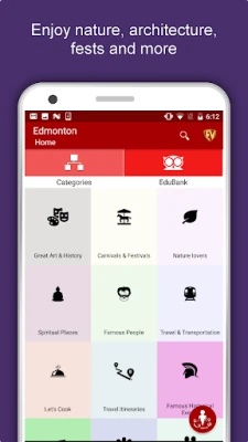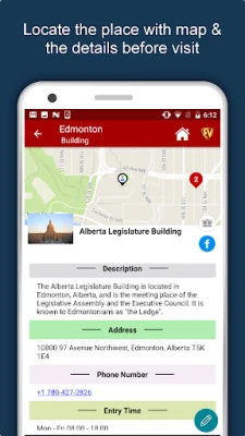 Apart from this, Edmonton Travel & Explore guides you Why, When and How to visit various places in Edmonton with precise location on the detailed Map. There are two ways to explore this app - Category view and EduBank favorite places view. Pin your destinations and get the routes on the Map. Not only this, you can see exactly how the places look like with Street View integrated in this app. The app also has a feature to Rate and write Review/Experience regarding entity(s) through Login. Your Travel experience and rating will help the user community.