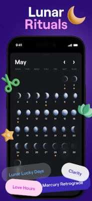 Track moon phases, celestial events, and holidays tied to the lunar cycle with a precise Eastern astrology-based calendar. Get phase-specific tips to lift mood, focus, and creativity in minutes. Know when to rest, act, or reflect for peak wellbeing. Discover daily tips, Full Moon and New Moon rituals, and retrograde insights to align your life with cosmic energy.