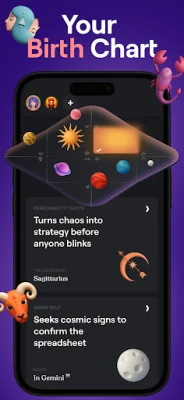 Chat with the in-app Astrologer about career moves, travel dates, or self-care, and get a clear, Birth Chart-based answer in seconds
