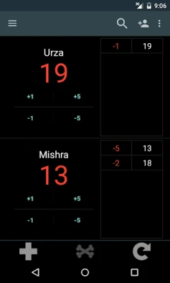 The application includes a two-player life counter which tracks life, poison, and a history of changes.
