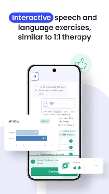 • Aphasia and Dysarthria Support: Cutting-edge speech analysis and state-of-the-art language exercises assist you in practicing your speech and language skills.