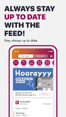 PH Gmünd Campus App is your team partner on campus, which is impressive and integrates perfectly into your everyday study life. In no time at all, you'll have all the important information about your studies with you wherever you are. You'll be surprised how easy it is.