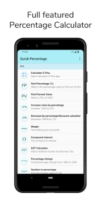 Free and All in one percentage calculator app with 11 handy percentage calculators with convenient features like easy copy-paste, memory keys, dark mode, support for shortcut widgets and direct result sharing.