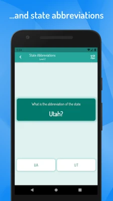 To get to know the USA states, simply select the learning mode and click on the map of the USA to view the details of the state, including the region in which it is located, its abbreviation, capital, area of the state and its population.