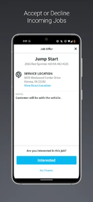 Streamlined interface bringing greater simplicity allowing the swift acceptance and execution of roadside services.